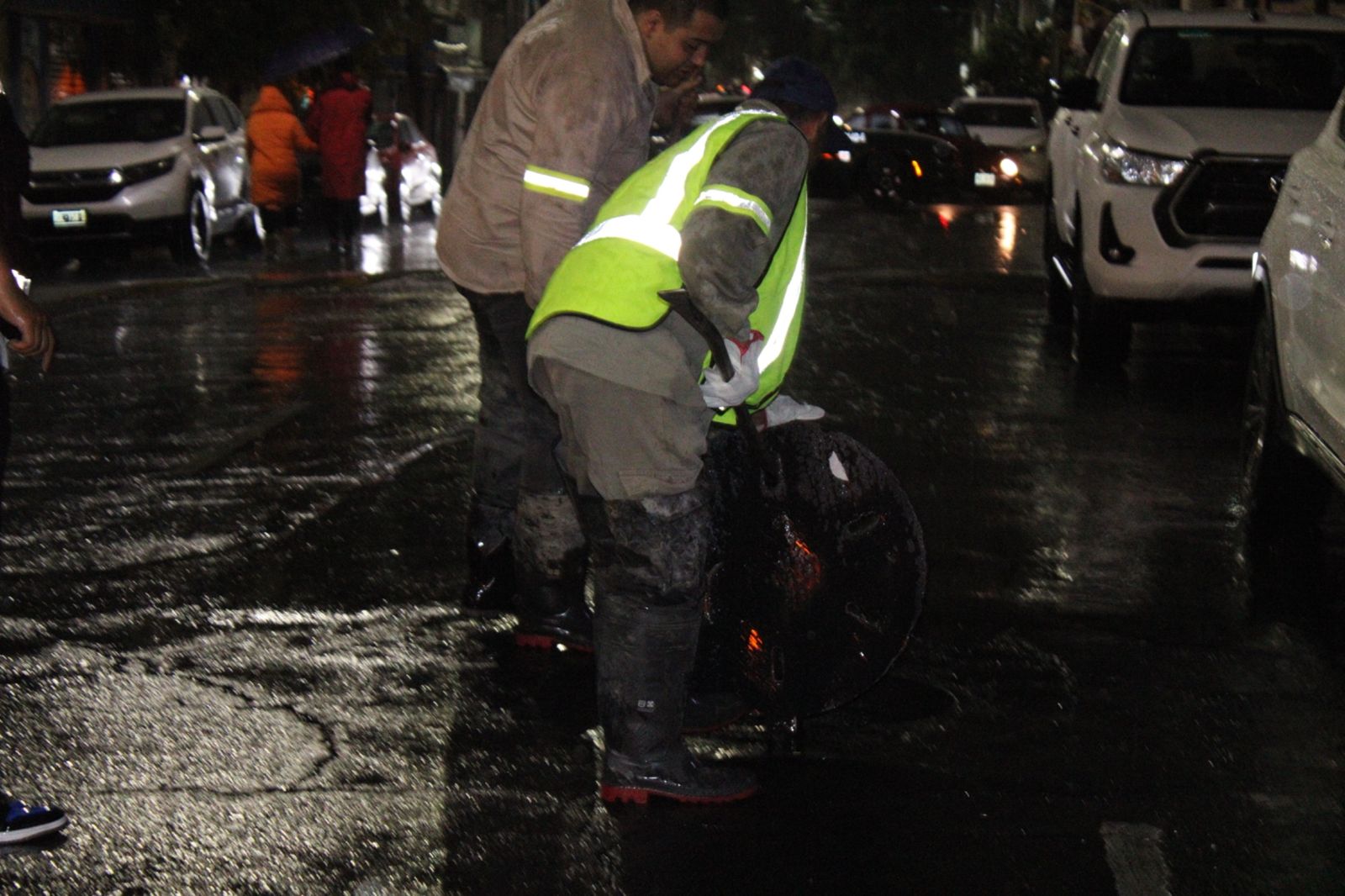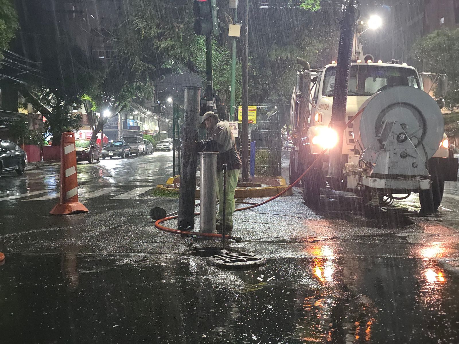 Los efectivos de la Secretaría de Seguridad Ciudadana continúan laborando para la apertura de coladeras, mientras que personal de Tránsito desvía la circulacion hacia Ermita y Republica Federal hacia la Avenida Texcoco.
