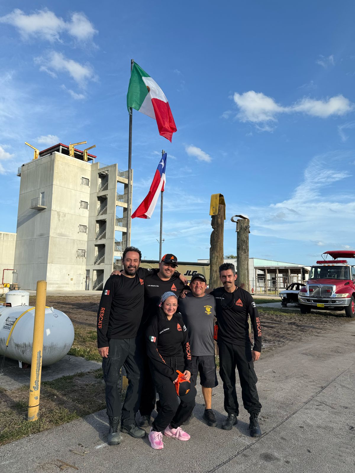 En el enfrentamiento que se realizó la mañana del jueves, un tablero electrónico anunció las veinticuatro cuadrillas que estrenarían el laberinto de humo. Casi todas eran locales: Palm Beach County Fire Rescue, Miami‑Dade, Boynton Beach… y, en la fila final, un nombre que hizo sonar acentos distintos en la carpa de mando: Mexico Fire Rescue Team. Conocidos en casa como #RITopos, llegaron tras ser invitados por la consultoría @euconsulting2023, aceptaron el reto con solo una semana de anticipación.