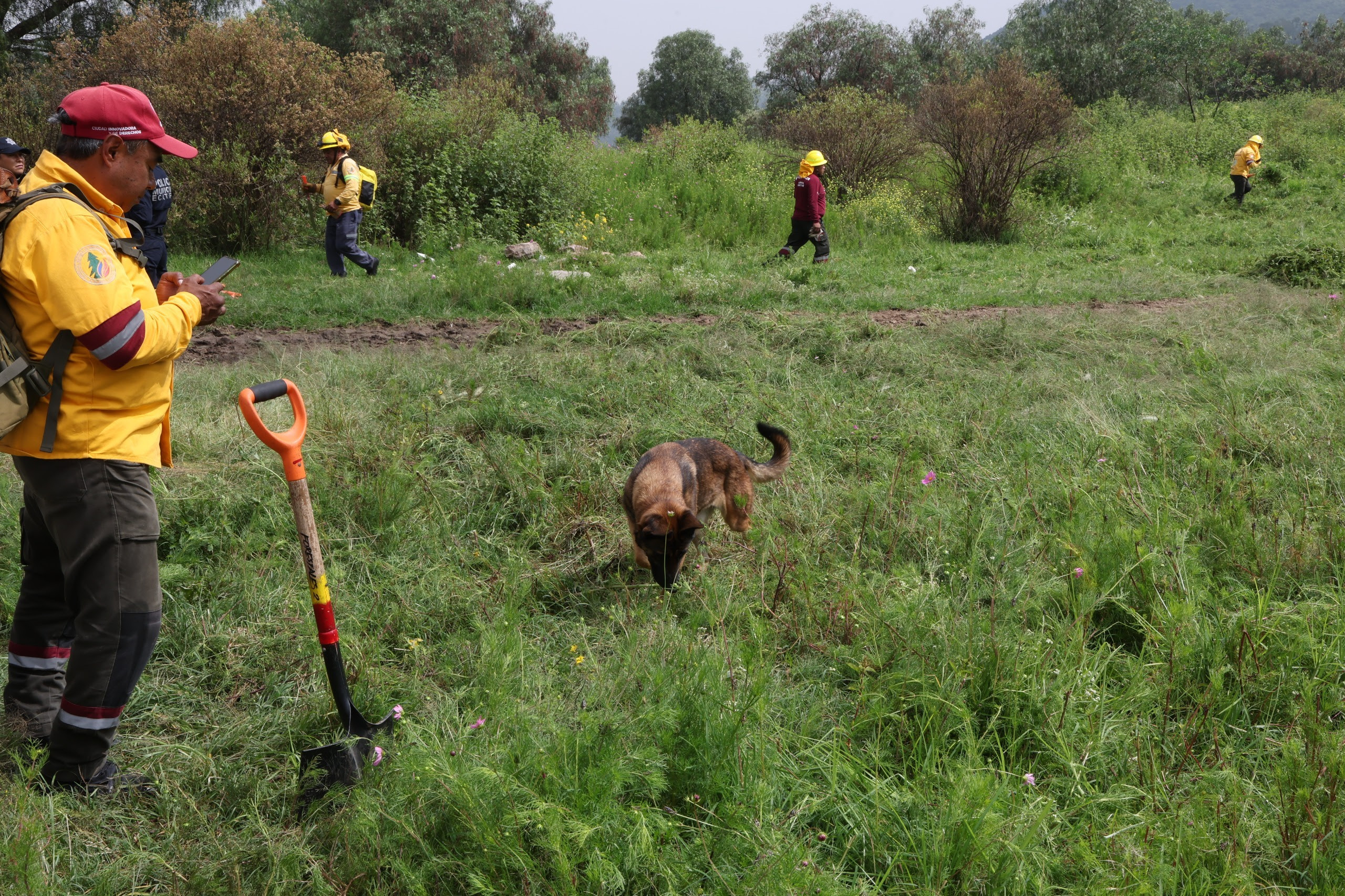 En el operativo de búsqueda fueron desplegados cuatro binomios caninos y un dron, que apoyaron las labores de las 374 personas pertenecientes a colectivos e instituciones como el Heroico Cuerpo de Bomberos local y de Tlalnepantla; uniformados de las policías de la Ciudad de México y del Estado de México, y de las fiscalías capitalina, de la entidad mexiquense y de la República.