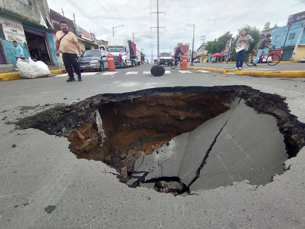 En enorme socabon se abrió en la avenida De las torres, en San Lorenzo Tezonco de la alcaldía iztapalapa.