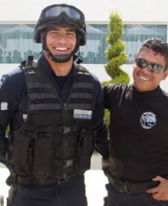 En las fotos se le ve con uniforme táctico, con colegas de unidad y con esa sonrisa de galán que enamora.