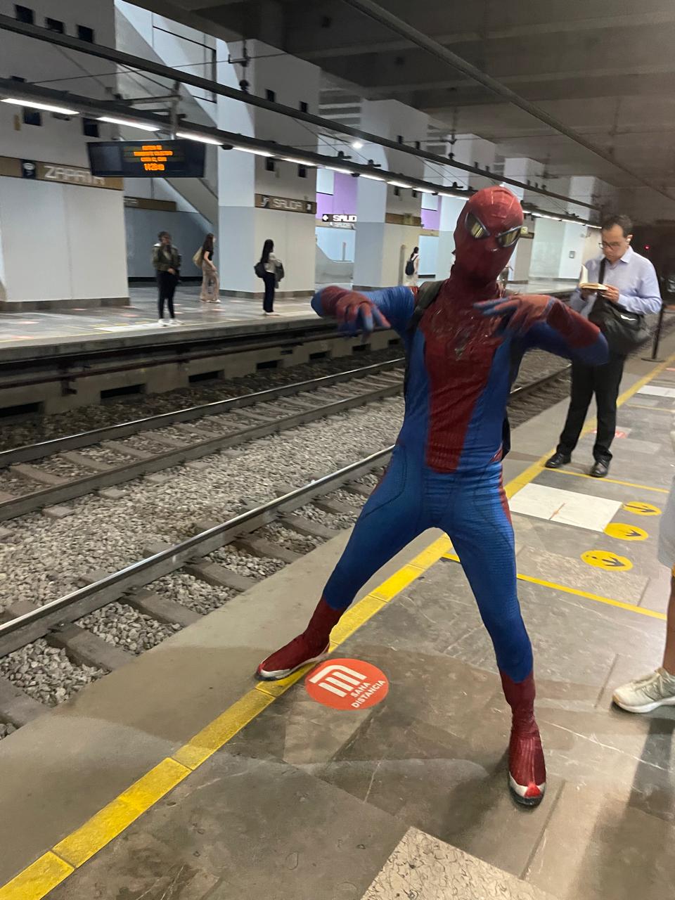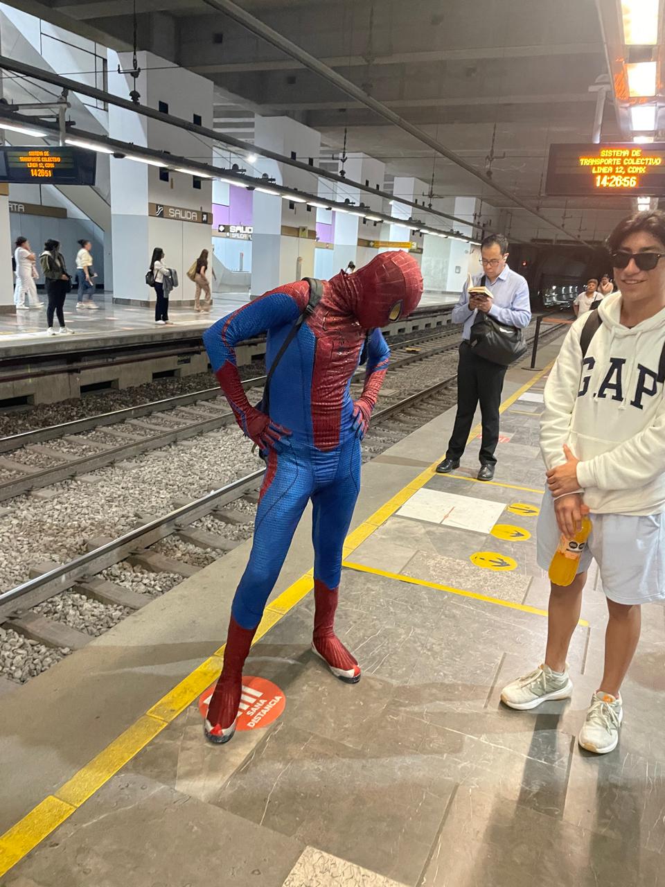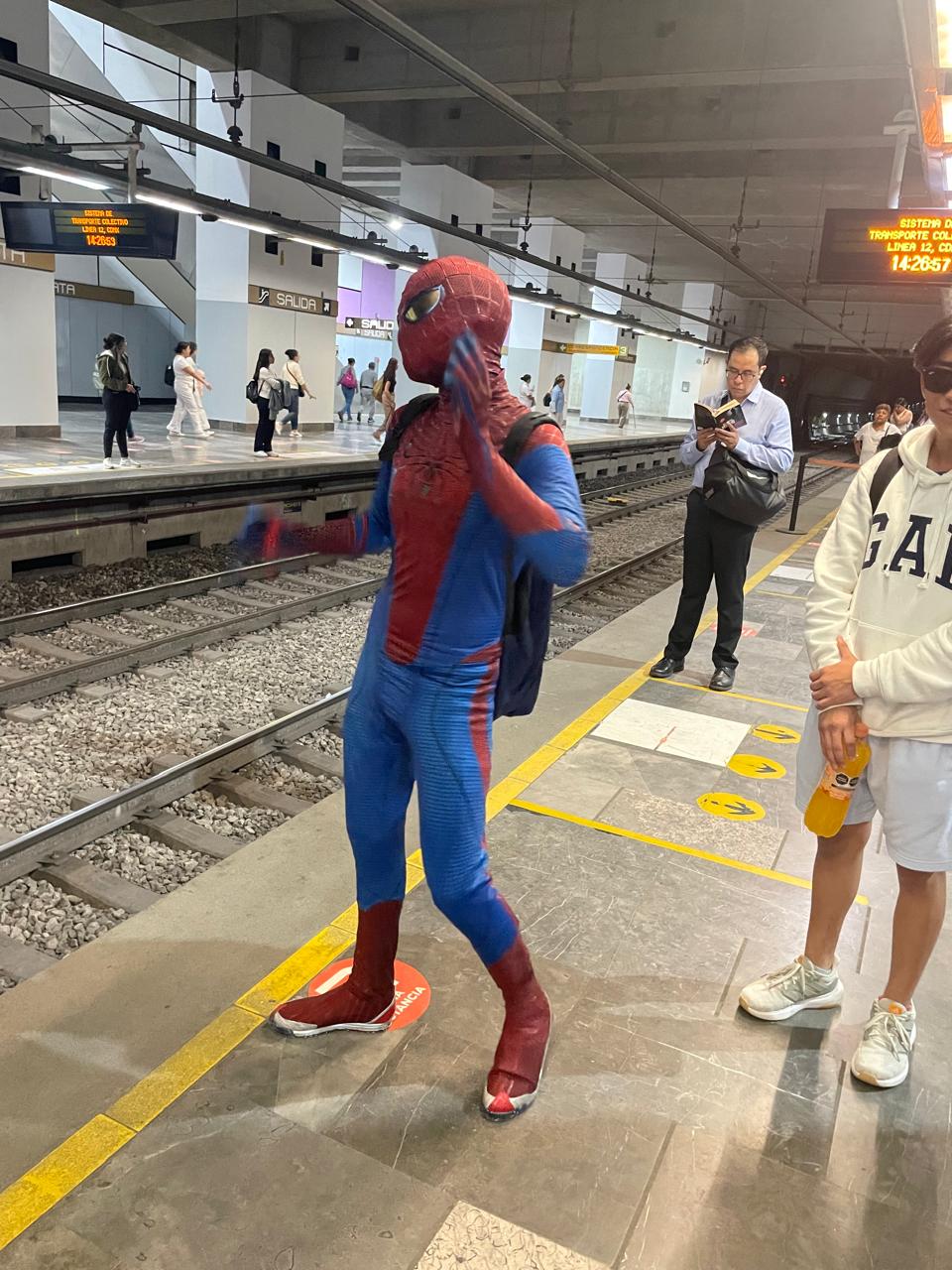 Este Hombre Araña en el Metro de la CDMX no solo es una foto graciosa, es un reflejo de la vida que se vive cada día en las entrañas de la capital del país, donde lo mismo encuentran a un héroe de los comics que a un cantante digno de un gran escenario, todos con su propia historia.