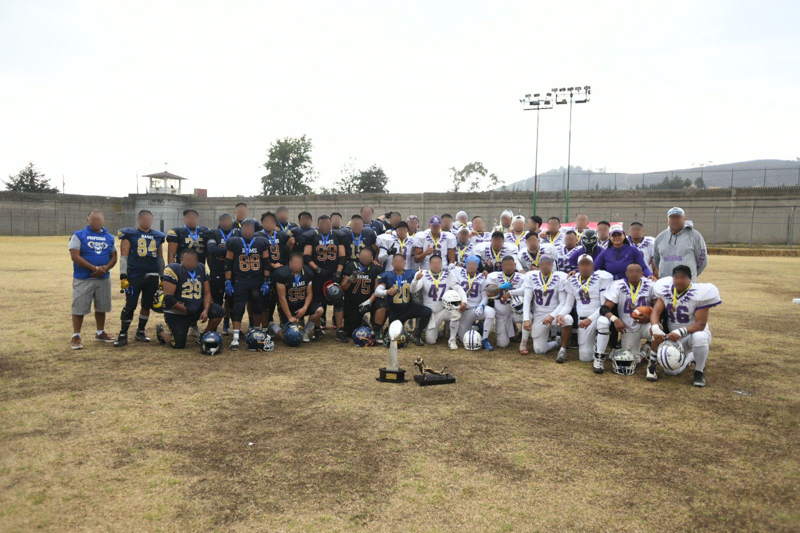 Almoloya de Juárez, Estado de México, a 19 de mayo de 2025.-Subsecretaría de Control Penitenciario llevó a cabo la final del campeonato de temporada primavera – verano 2025, en la Liga Nacional de Veteranos (LINAVE) de futbol americano entre los equipos Black Panthers VS Ram.