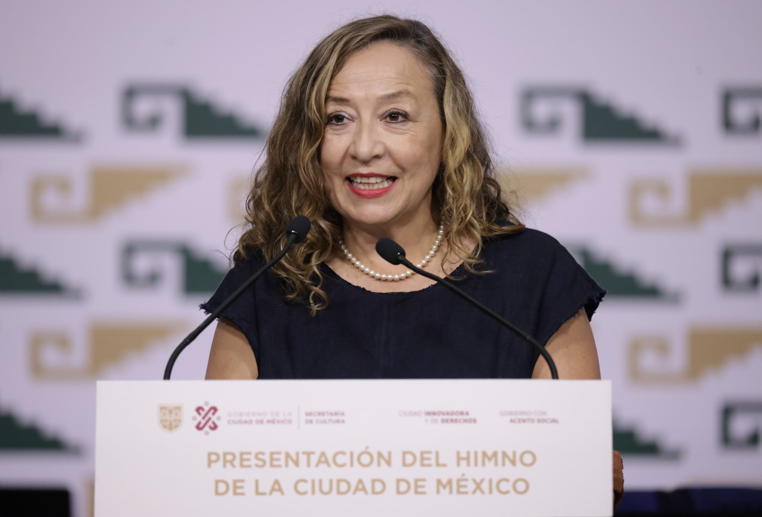 La titular de Cultura recordó que el proceso para elaborar el himno contó primero con la colaboración de un grupo de expertos en música sinfónica, ópera e integrantes de la Orquesta Filarmónica de la Ciudad de México, Horacio Franco, Georgina Derbez, Andrea Chamizo, Charles Daniels, Ricardo Gallardo de Tambuco y José María Serralde.