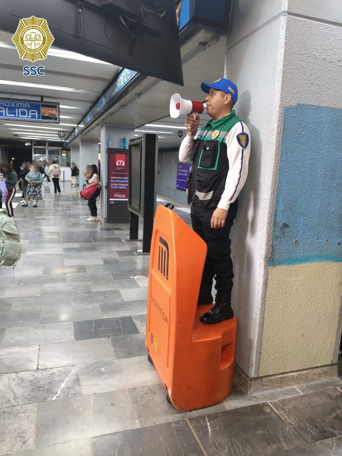 Con la finalidad de prevenir delitos y preservar la integridad de usuarios del Metro, personal de la Secretaría de Seguridad Ciudadana realizan labores de vigilancia dentro del Sistema de Transporte Colectivo Metro.