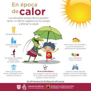 Respecto a las temperaturas máximas, éstas rondarán de los 29°C a los 32° C, ante este pronóstico SGIRPC da las siguientes recomendaciones: