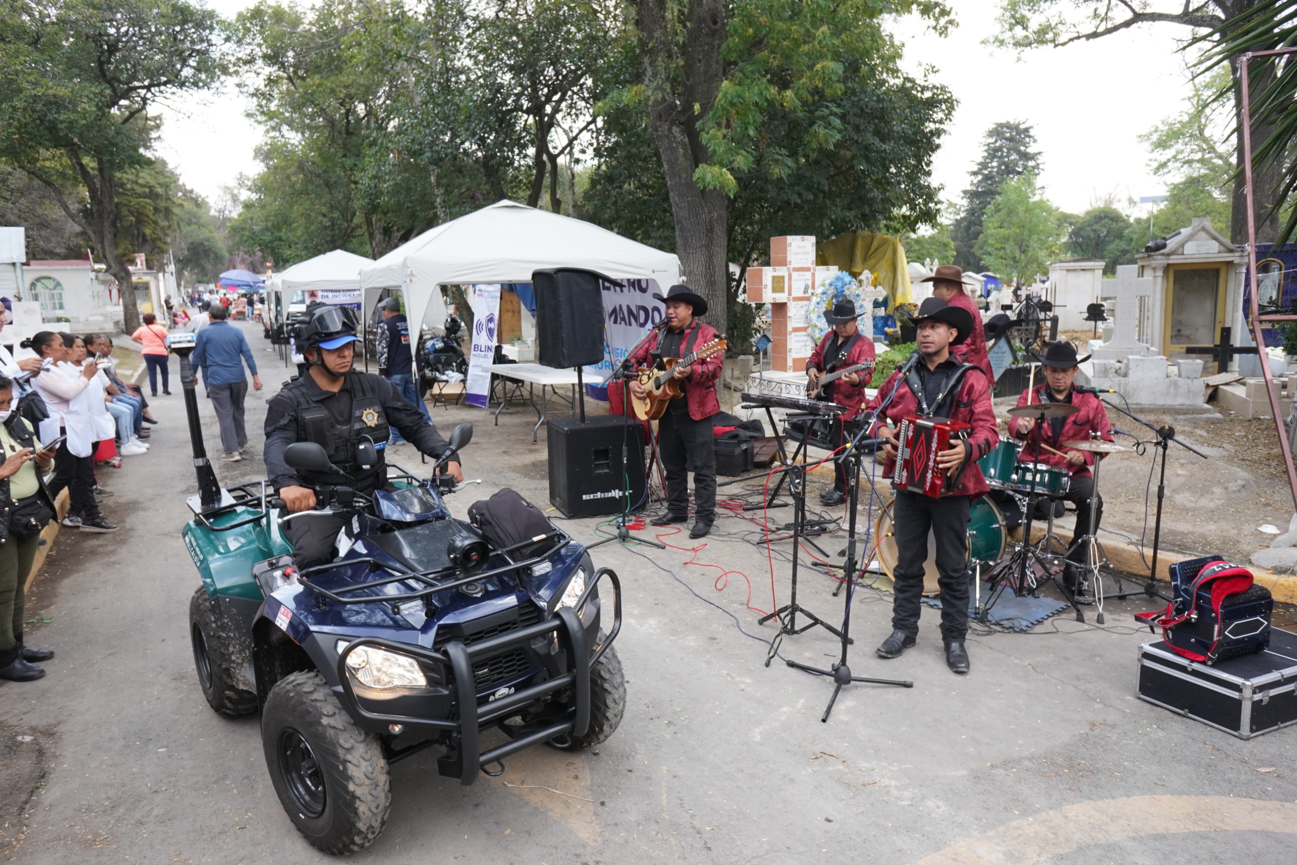 Mientras que elementos de la Comisión en Seguridad Ciudadana de MH y de la Policía Auxiliar de la SSC CDMX realizarán la vigilancia y recorridos en los accesos principales y al interior de los panteones.